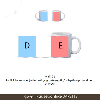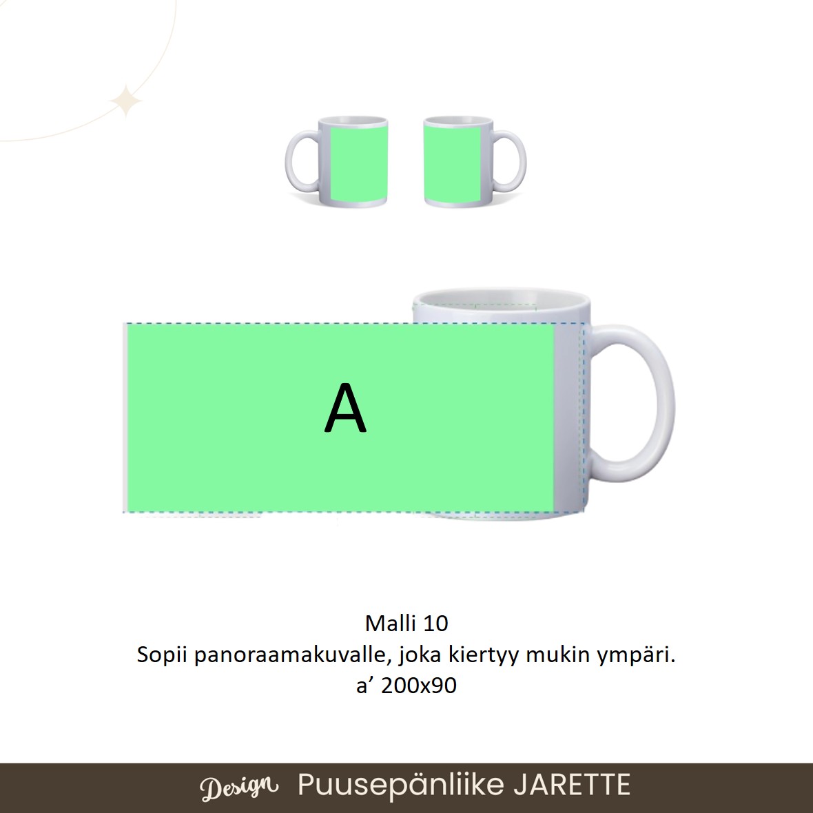 Muki on konepesun ja mikron kestävä. Suosittelemme käsinpesua, jotta painatus pysyisi hyvänä mahdollisimman pitkään.